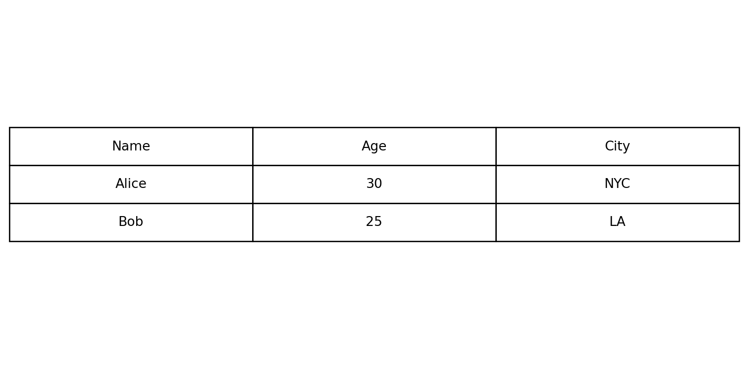 Tabular and Text Summaries: TABLE and WORDCLOUD support high-density summary communication for different data modalities. TABLE formats matrix-like values into presentation-ready cells with optional color customization, useful for KPI snapshots, lookup summaries, and report appendices where precise values must remain explicit. WORDCLOUD converts text corpora into frequency-weighted term maps, enabling quick thematic inspection during exploratory text analysis or survey review. Used together, these tools bridge exact numeric reporting and qualitative pattern discovery.
