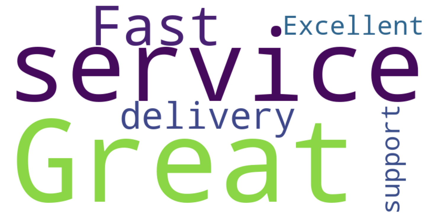 =WORDCLOUD({"Great service";"Fast delivery";"Excellent support"}, 10, "white", "viridis")